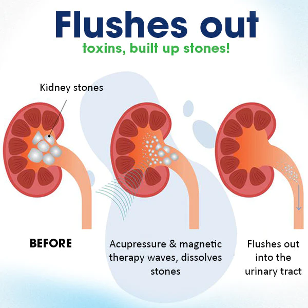 The MedPlus™ Acupressure Kidney Care Belt helps the kidneys by combining magnetic therapy and acupressure to stimulate specific points, associated with the kidneys. This stimulation promotes the flow of blood and energy to the kidneys, helping to dissolve kidney stones and improve kidney function.
