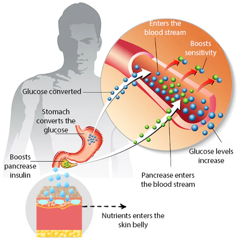 When applied to the belly, the oil works to increase circulation and stimulate the production of insulin, the hormone that regulates blood sugar. The herbs and essential oils in the formula also help to improve glucose utilization, which can result in lower blood sugar levels.
