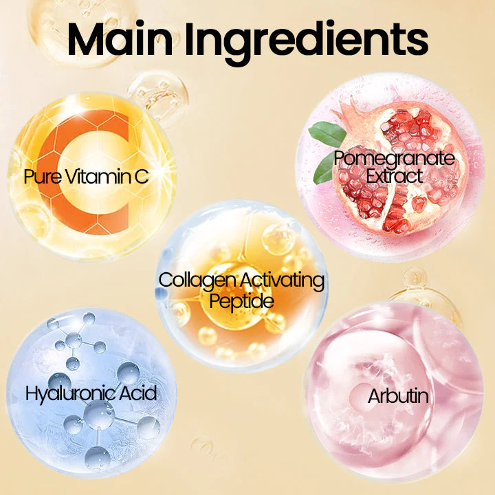 - Key Ingredients: Pure Vitamin C, Collagen-Activating Peptides, Arbutin, Pomegranate Extract, Hyaluronic Acid