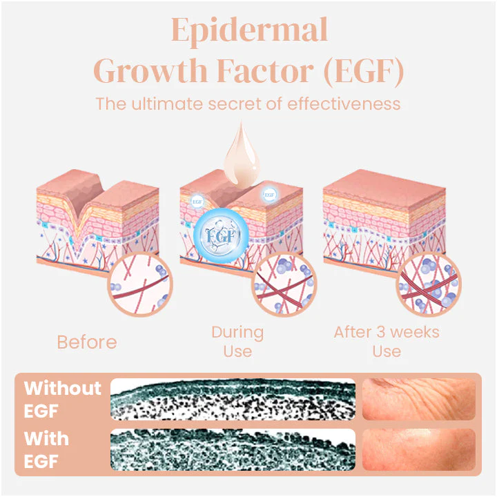 - Ingredients: EGF (epidermal growth factor), Hyaluronic Acid, Niacinamide & Glycerin.