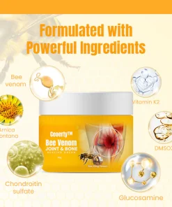 - Ingredients: Bee Venom, Arnica Montana, Glucosamine, Methylsulfonylmethane (MSM/DMSO2), Chondroitin Sulfate & Vitamin K2