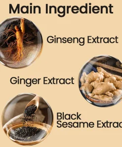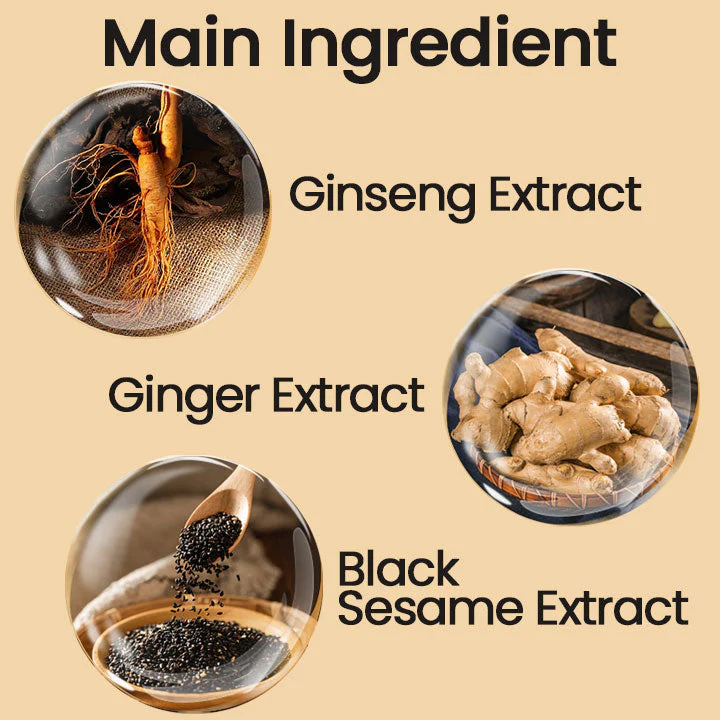 - Ingredients: black sesame extract, ginseng extract, ginger extract, tea polyphenols, vitamin B5, vitamin E.