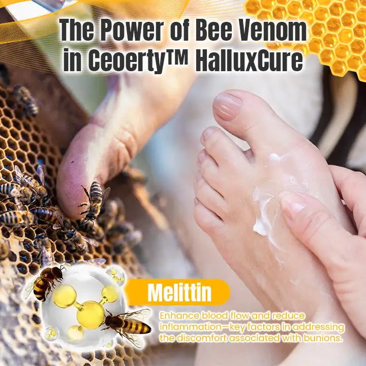 “As a podiatrist, I see firsthand how bunions affect mobility and cause pain. Ceoerty™ HalluxCure Bee Venom Relief Cream is an innovative solution for managing this pain. With the potent anti-inflammatory compounds in bee venom, it effectively reduces swelling and tenderness while improving joint flexibility. I recommend Ceoerty™ HalluxCure as a non-invasive, highly effective option for managing bunion discomfort and supporting overall foot health.” – Dr. Emily Carter, DPM, Specialist in Foot and Ankle Care