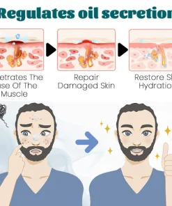Ceoerty™ Men’s AcneFree Hydra Cream is meticulously designed with antibacterial and anti-inflammatory properties. Its antibacterial components penetrate deep into the pores, eliminating bacteria hidden beneath the skin’s surface, effectively addressing the root causes of acne. Unlike standard skincare products, it not only cleanses the skin but also provides an antibacterial barrier that protects your skin from bacterial invasion for extended periods. Meanwhile, the anti-inflammatory ingredients swiftly alleviate skin inflammation, reduce redness, and offer immediate soothing effects.