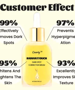 RadiantTouch Dark Spot Corrector Serum by Ceoerty™ is my new favorite. The serum’s lightweight texture feels great on my skin, and it’s delivering on its promise. My dark spots are fading, and my complexion looks more radiant overall. Five stars for this effective serum!