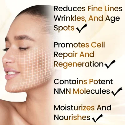 - Ingredients: NMN, Retinol, Hyaluronic Acid, Vitamin C, Peptides, Coenzyme Q10, Niacinamide, Resveratrol, Alpha Hydroxy Acids, Green Tea Extract