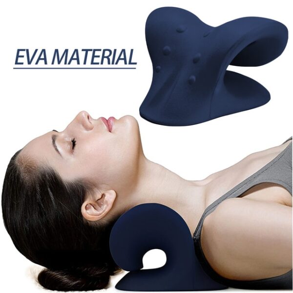 Lie on the Cervical Neck Traction Pillow and let the weight of your head gently stretch the upper shoulder and anterior neck muscles.