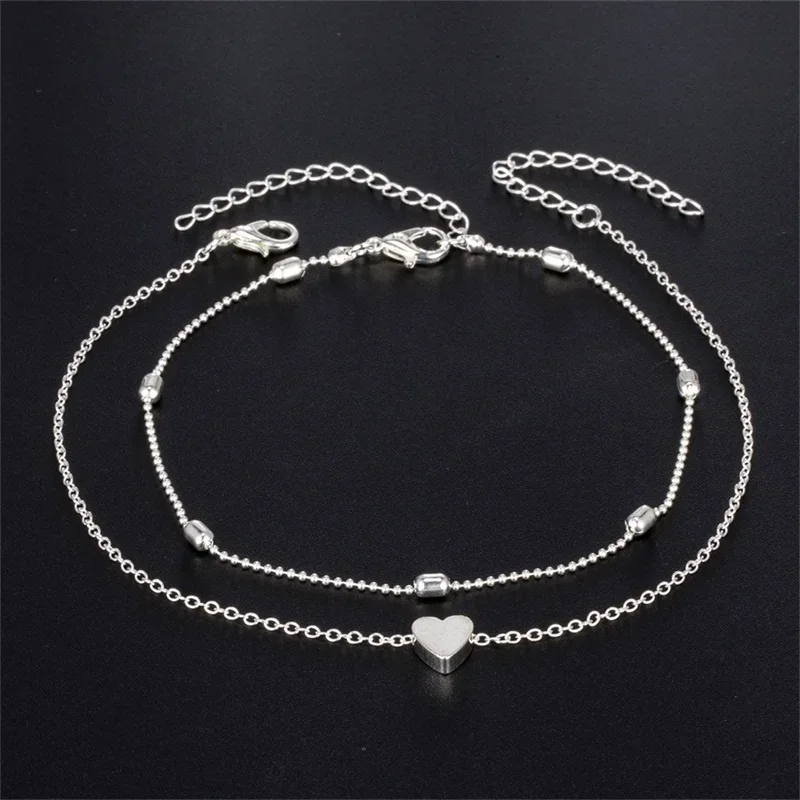 Delysia King Women Summer Round Bead Chain Anklet Simplicity Temperament Double-deck Holidays Ankle Bracelet
