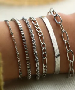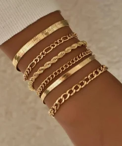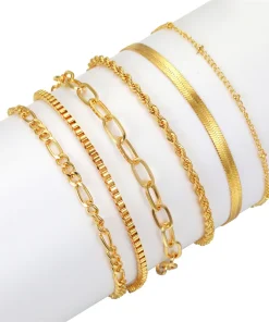 6Pcs/Set Fashion Thick Chain Link Bracelets Set For Women Gold Color Silver Color Metal Snake Chain Twist Bracelet Punk Jewelry