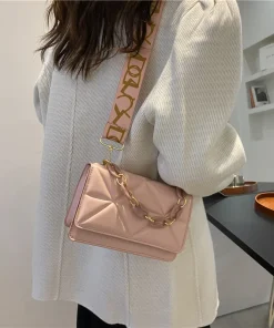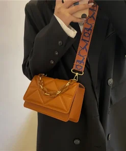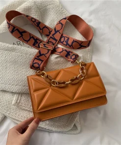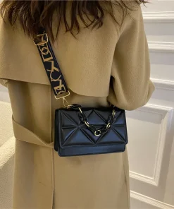 New WOMEN’S Bags Korean Version of the Lingge Chain Shoulder Bag Solid Color Messenger Small Square Bag