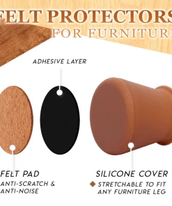 Made of ultra-flexible silicone, making the covers snugly fit most furniture legs regardless any shape (round / square). Suitable for any furniture like chairs, cabinets, tables, sofas, beds etc. Chair & Table Legs Felt Protective Covers (Set of 8)!