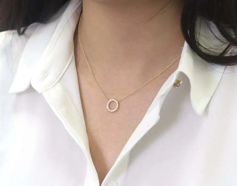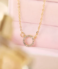 Elegant Jewelry Crystal Circle Pendant Necklace Golden Color Unquie Women Fashion Necklace Wholesale