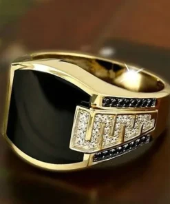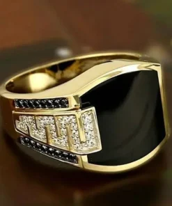 Classic Men’s Ring Fashion Metal Gold Color Inlaid Black Stone Zircon Punk Rings for Men Engagement Wedding Luxury Jewelry