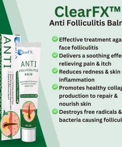 Beyond this, the balm goes a step further by effectively neutralizing the culprits behind folliculitis—bacteria and free radicals. Through its potent formula, it combats these problematic agents, thwarting their detrimental impact on the skin. In essence, ClearFX™ Anti-Folliculitis Balm offers a comprehensive solution, working synergistically to tackle both the root causes and the symptoms of folliculitis, allowing you to experience newfound comfort and skin clarity.