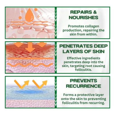 ClearFX™ Anti-Folliculitis Balm operates by inhibiting the action of histamine, a chemical compound known to elicit allergic responses and provoke itching sensations. This innovative anti-folliculitis balm not only targets the root cause of inflammation, but also employs a multifaceted approach to address folliculitis and its distressing symptoms. By intercepting nerve receptors within the skin, it orchestrates a numbing effect, providing relief from the discomfort caused by inflamed hair follicles.