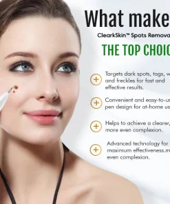 I was hesitant to try this product but I’m so glad I did. The ClearSkin™ Spots Removal Pen has helped me remove the skin blemishes that I’ve been struggling with for years. It’s easy to use and the results are painless. My skin looks so much better and I would definitely recommend this product to others.