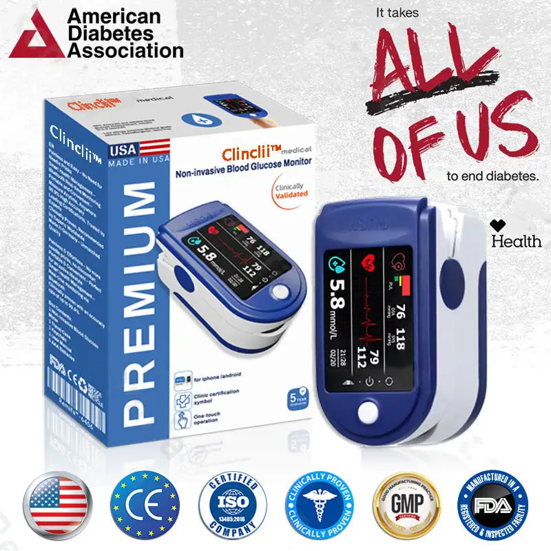 Clincliiโข offers a blood sugar monitor certified by ADA & FDA. CE. and ISO to ensure the highest quality and safety standards. Developed in the United States. the device meets strict U.S. and international standards. making it an indispensable tool for accurate and reliable blood sugar measurements in the U.S. and worldwide.