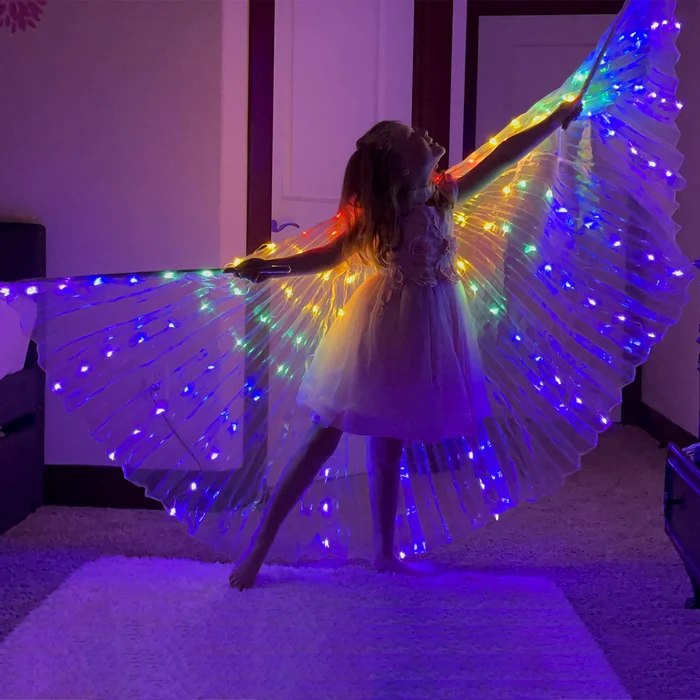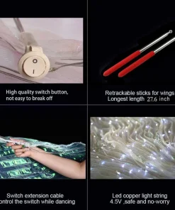 - 1 x Belly Dance LED Wings , 1 x Pair telescopic sticks, (Batteries not included)