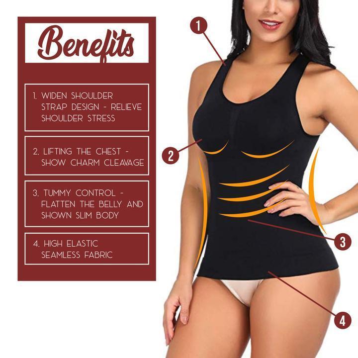 The Comfortable Wireless Cami Tank Top features removable built-in push-up pads that effectively push the boobs up to create an amazing bust shape. The secret lies in its 3-in-1 functionality, combining the slimming power of shapewear, the lifting action of a push-up bra, and the high back coverage of a slimming camisole.