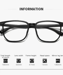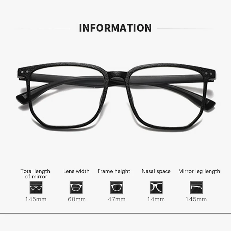 Size:Glasses width:145mm, lens width: 60mm, lens height: 47mm, nose tip distance: 14mm, leg length: 145mm