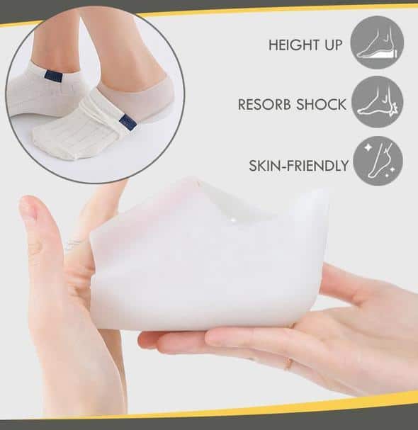 Designed for all sizes, our concealed footbed enhancer will make on the spot rise to your height! Simply wear it inside your socks and get confidence all day!