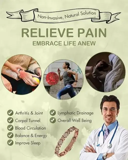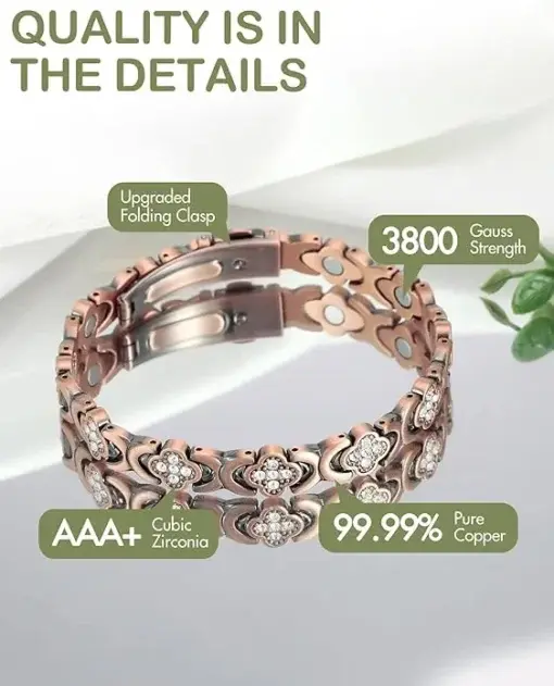 3X Strength Magnetism: The copper bracelet is set with 3 rows of magnets (3800 Gauss each) for maximum effectiveness.