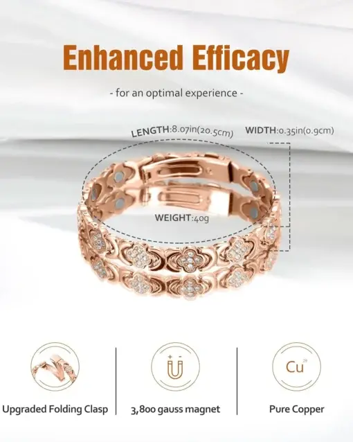 - ADJUSTABLE & PREMIUM: Arriving at 8.07(20.5cm) long & 0.35(0.9cm) wide. The copper bracelet link is adjustable. comes with a free adjustment tool. The upgraded folding clasp makes it a breeze to put on and take off the bracelet.
