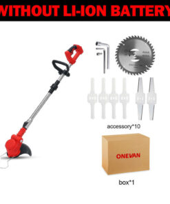 - Package Included: 1 x Electric Grass String Trimmer(Battery NOT Included)ç 1 x Saw Blade, 2 x Alloy Blade, 5 x Plastic Blade, 0/1/2 Battery, 1 x Wrench, 1 x Assistant Handle, 1 x Push Wheel, 1 x User Manual