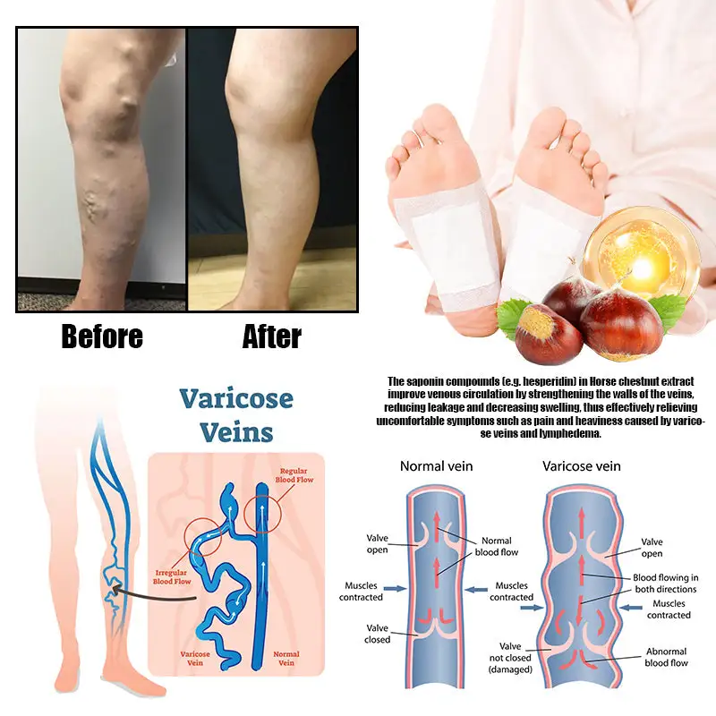 COROU® Magnetic Therapy Foot Patches help treat varicose veins by enhancing circulation and reducing inflammation. Horse chestnut extract improves blood flow, lowers venous pressure, and supports vascular health. A study in Vascular Health and Risk Management shows that this extract reduces vein visibility and improves vascular health. Within two weeks, users often experience less visible veins, reduced discomfort, and relief from symptoms like leg cramps and heavy legs.