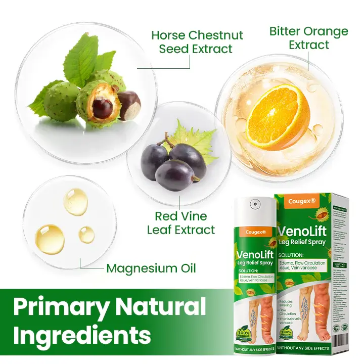 Each ingredient in Cougex® VenoLift has been carefully selected based on clinical research demonstrating real effectiveness in reducing leg swelling and improving circulation.