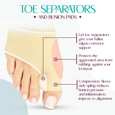 It manages the symptoms from your bunions, reduces pressure on the foot joint and stops bunion formation from getting worse, it is easily worn either under socks or shoes when working, relaxing or running.