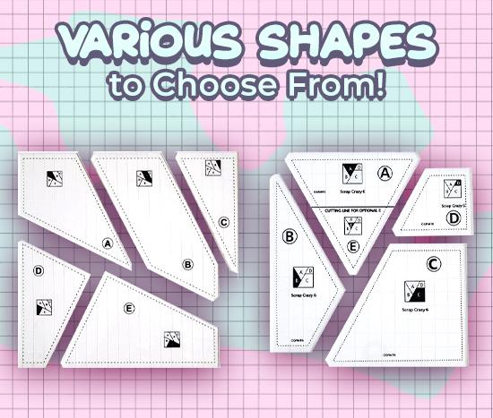 Save time creating crazy patchworks with the Creative Quilt Cut Template! You don’t have to manually measure each patch to create a perfect pattern.