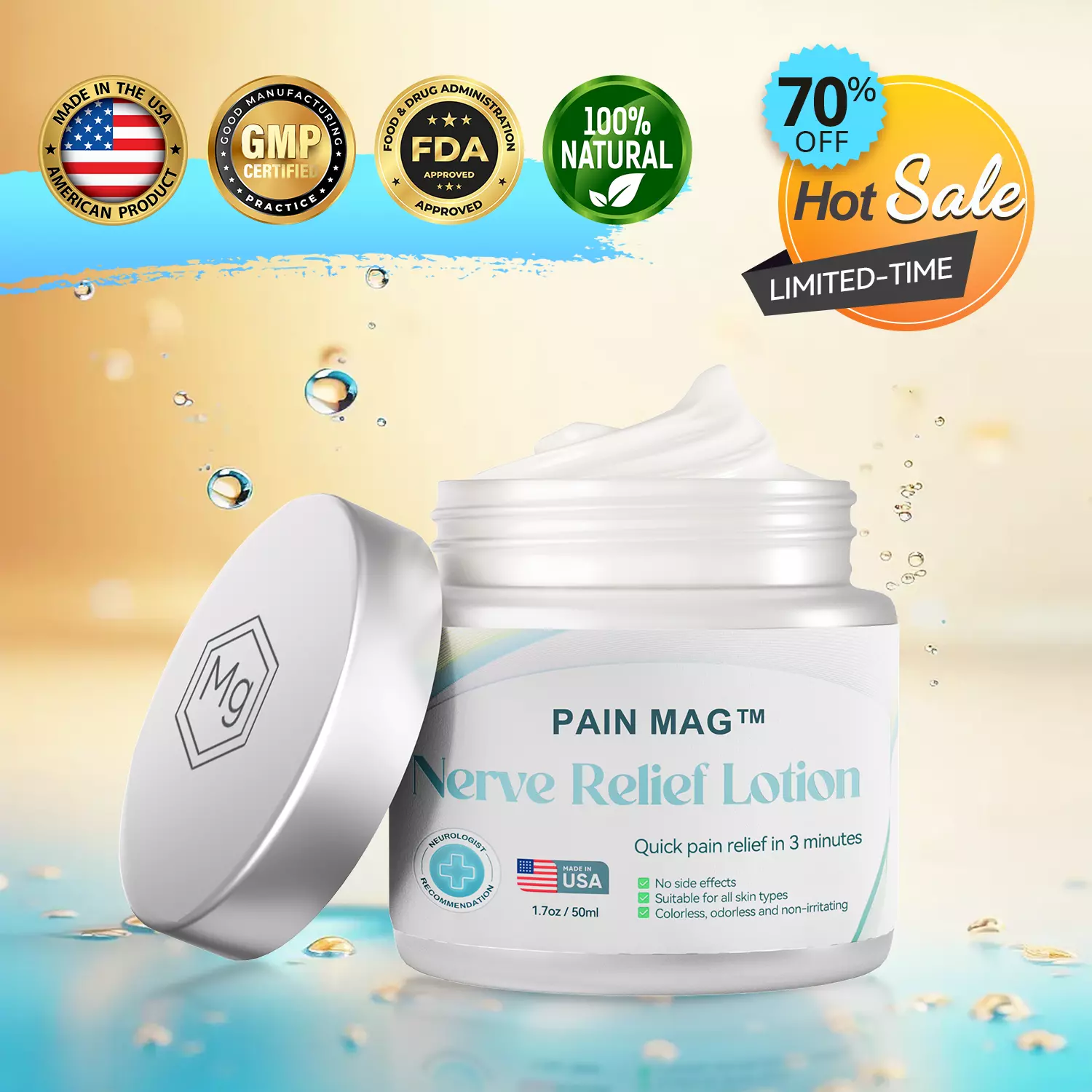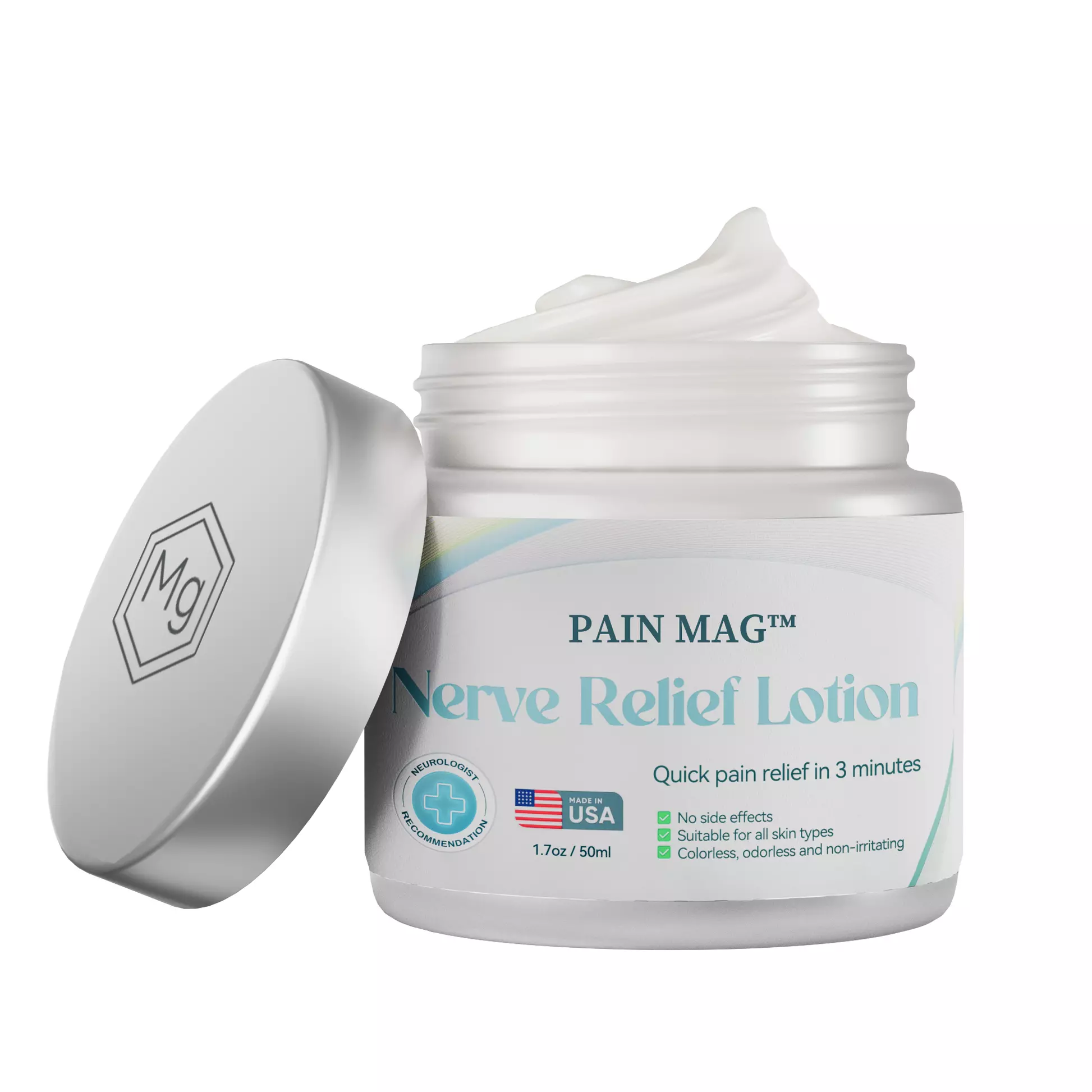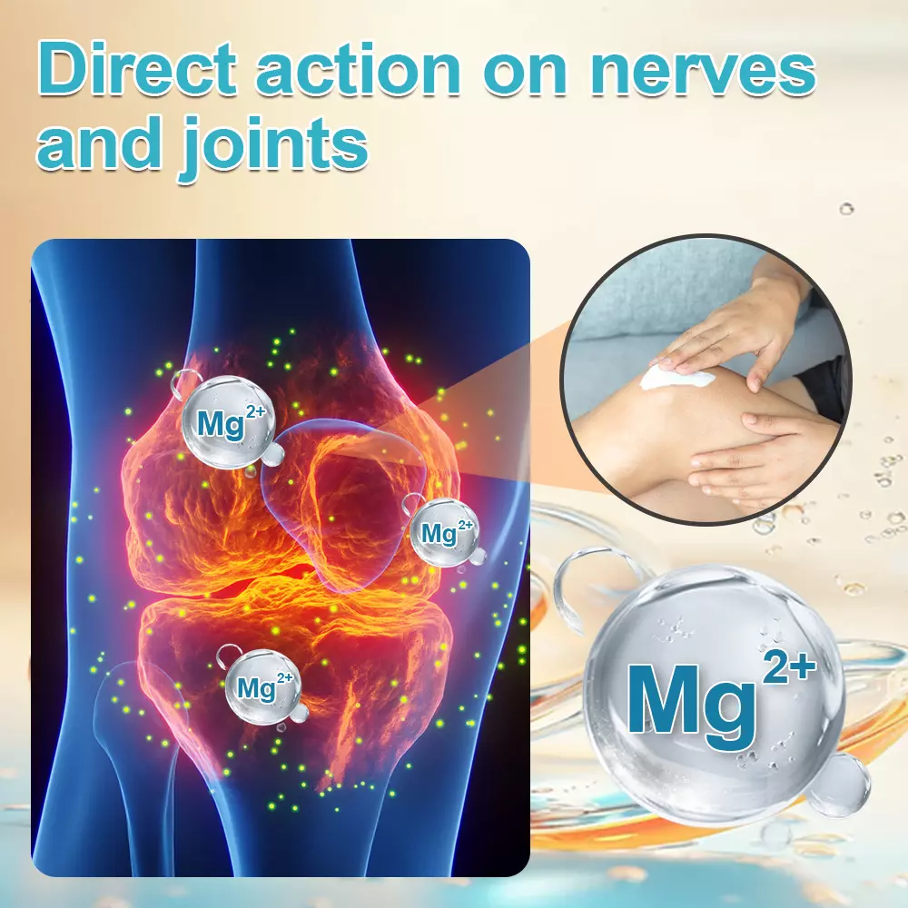 When magnesium is applied topically, it interacts with nerve cell membranes, improving the nerve conduction process. It stabilizes the nerve cells’ electrical potential, helps restore normal ion concentrations, and inhibits excessive nerve signal activity. This action, combined with its anti-inflammatory effects, reduces nerve pain and prevents further damage, providing lasting relief.