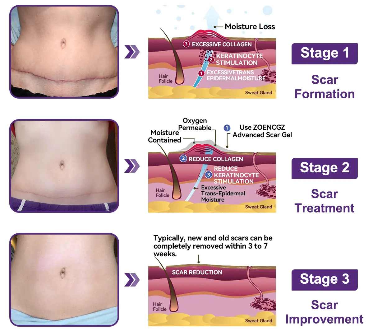 You will see the results of this natural scar removal gel very quickly with dramatic improvements within 1-2 weeks!