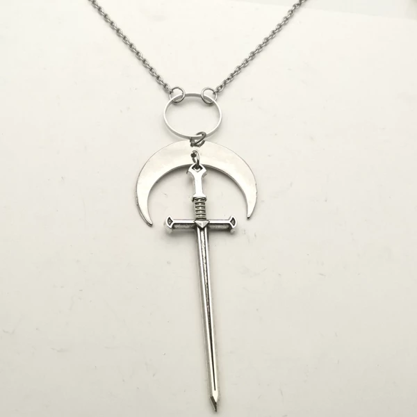 - Silver sword necklace with crescent