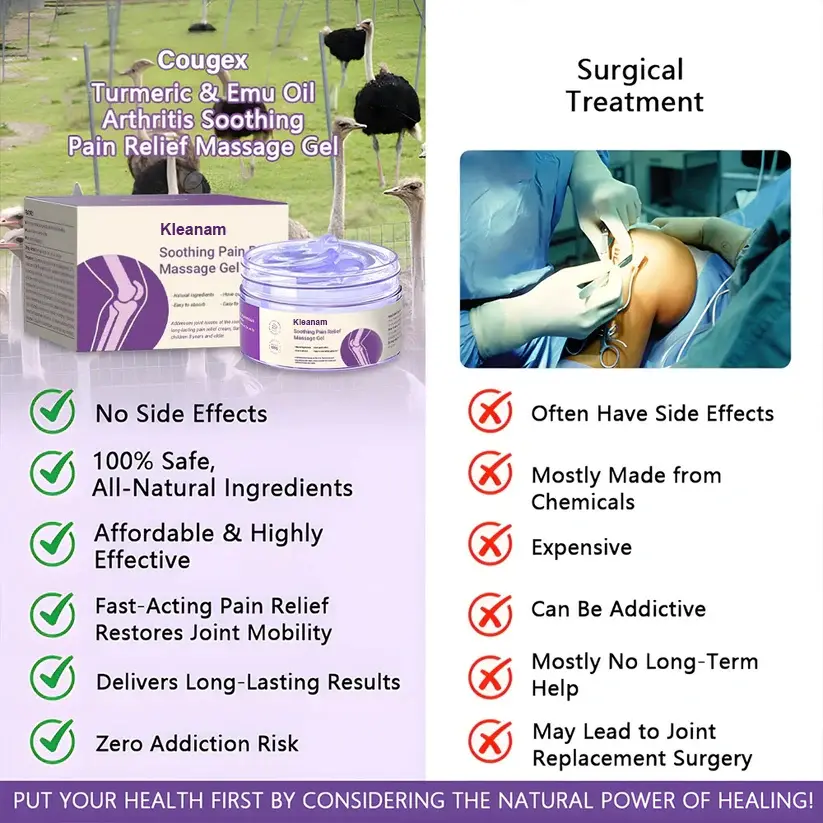Get back to pain-free movement with Kleanam™ Turmeric & Emu Oil Arthritis Pain Relief Massage Gel!