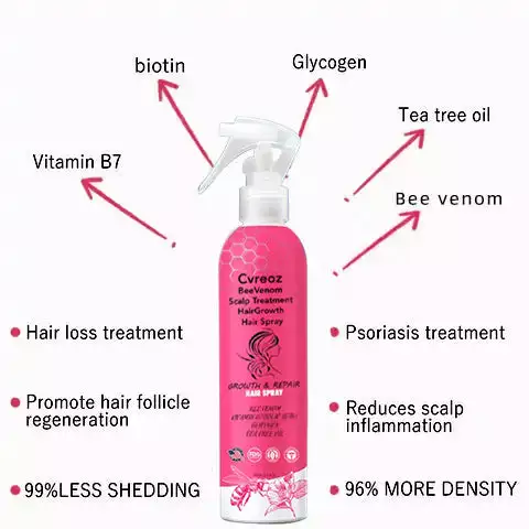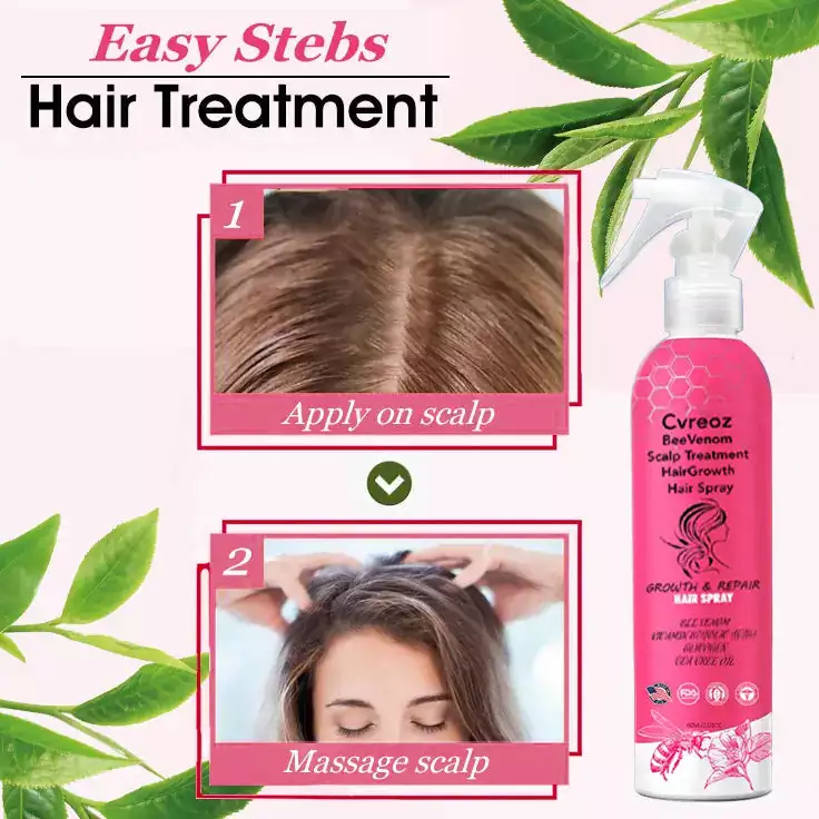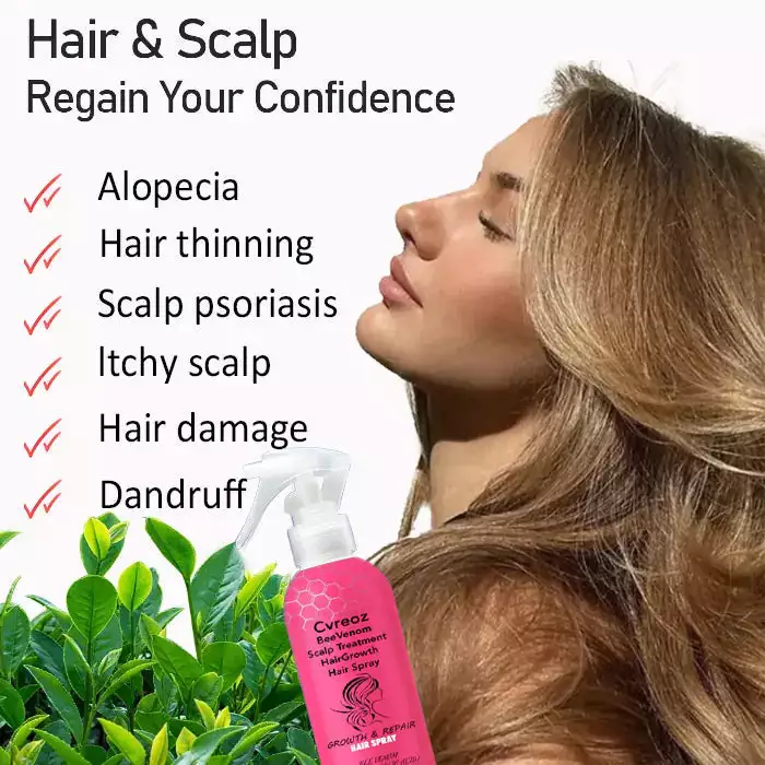 Cvreoz BeeVenom Scalp Treatment HairGrowth Hair Spray is a cutting-edge, clinically proven solution designed to tackle a wide range of hair and scalp issues, from hair loss and thinning to scalp psoriasis and dandruff. This powerful spray uses a combination of scientifically-backed ingredients, including bee venom, biotin, and tea tree oil, to nourish and repair damaged hair follicles, stimulate hair growth, and restore scalp health.