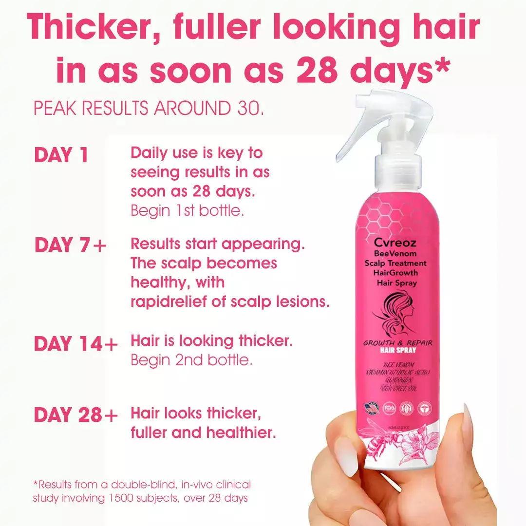 Take advantage of a 48% discount on Cvreoz BeeVenom Scalp Treatment HairGrowth Hair Spray, but hurry – stock is limited! Fast worldwide shipping ensures you’ll see results in just a few weeks.