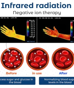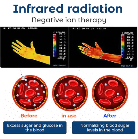 CZTICLE® Blood Sugar Regulation Medical Health Wristband uses two technologies: negative ions and infrared far technology. These two technologies work together to regulate blood sugar levels in the body. EasyRx™ Blood Sugar Regulation Medical Health Wristband emits negative ions that exit from the wristband and are absorbed by the body through the skin. Negative ions contribute to improved circulation and help enhance glucose uptake into the cells. Furthermore, negative ions can contribute to insulin regulation and increase insulin sensitivity, essential for maintaining a healthy blood sugar level.
