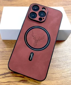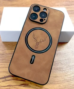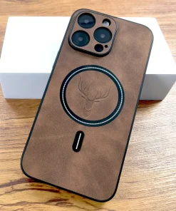 Luxury PU Leather Deer Case For iPhone 16 15 14 13 12 11 Pro Max Plus 15Pro 14Pro 13Pro ProMax For Magsafe Wireless Charge Cover