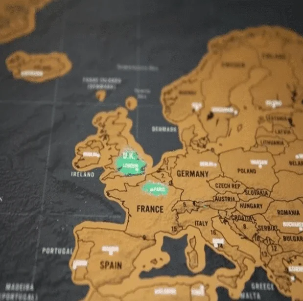 Whenever you visit a country, scratch off the gold foil on top of that country to reveal the beautifully colored landscape underneath. Relive your travel memories and feel the wonder of exploration!