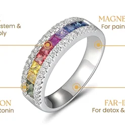 Diakiane Rainbow-Tourmaline Spinni-Ring is used a new-technology Japanese medical device. This ring is entirely magnetized by 55mT at 10-mm pitches in the Alternating North-South Polarity Orientation. This allows TitaniumION force from the whole neck loop to spread the effects across a wide surface, leading to improve blood circulation, improve metabolism, and enhance masculine energy.