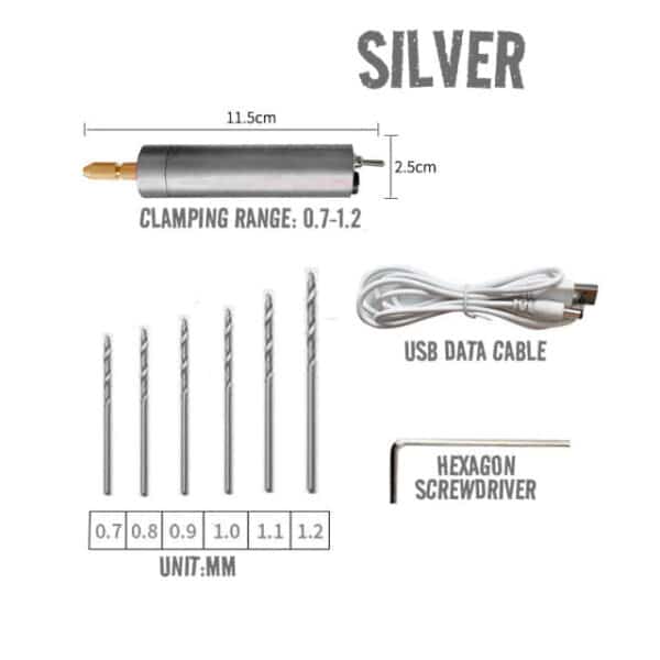 - Package includes: machine + 6 drills + USB data cable + 1 hexagon screwdriver