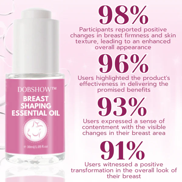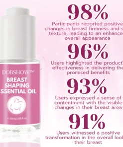 The Dobshow™ Breast Shaping Essential Oil is your partner in achieving the beautifully contoured and voluminous breasts you’ve always desired! With its collagen-enriched blend containing elastin, this remarkable formula offers a solution that lifts and firms your breasts and provides enduring nourishment. Say goodbye to concerns about flat or sagging breasts. This oil’s innovative approach uplifts and enhances your breast appearance, leaving behind the need for invasive measures like breast implants or injections.