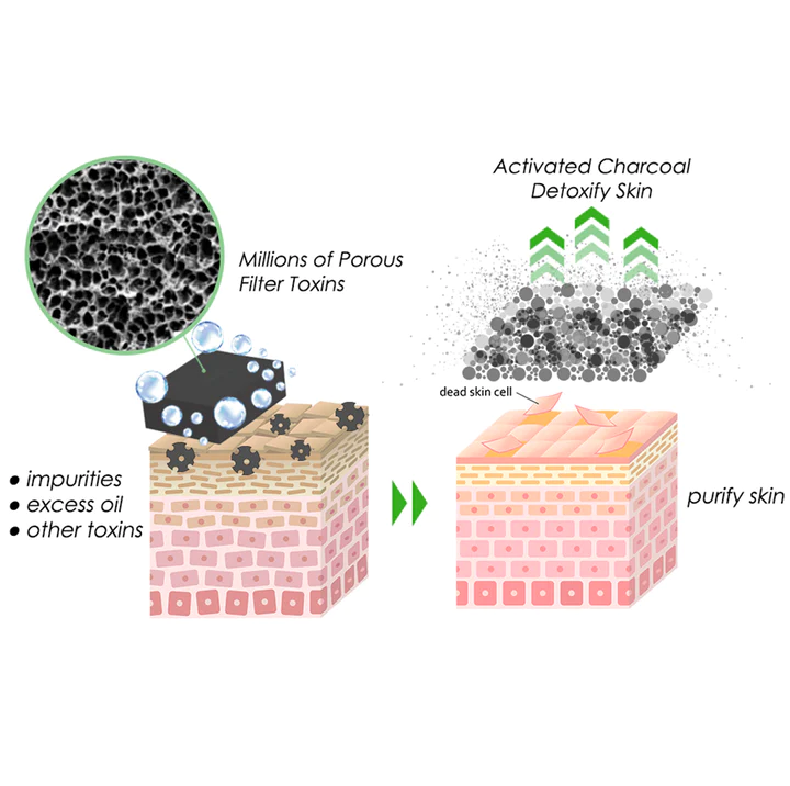 Our treatment soap is made with activated charcoal, it contains millions of pores and has a high adsorption capacity, meaning it can absorb impurities, excess oil, and other toxins from the skin, helping to purify and detoxify the skin, which can contribute to a brighter appearance. Plus, it promotes detoxification for the body and skin. The removal of these toxins can reduce melanin and brighten skin colour.