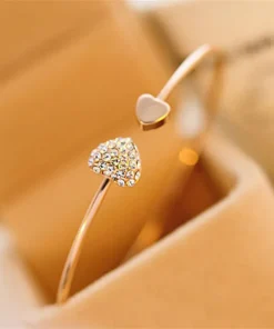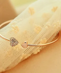 Hot New Fashion Adjustable Crystal Double Heart Bracelet Cuff Opening Bracelet For Women Jewelry Gift Mujer Pulseras