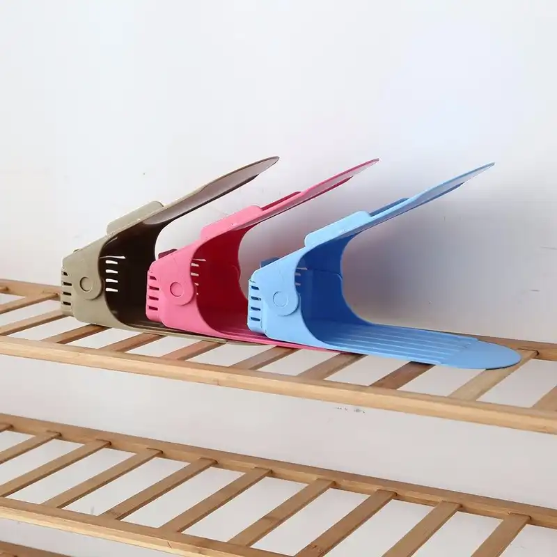 These shoe holders are made of a quality plastic material, durable enough to support your favorite pair of shoes. The flexible design of this Shoe Rack provides space for one shoe on the top and one on the bottom. You can save even more space if you decide to buy more than one set of these wonderful shoe holders.