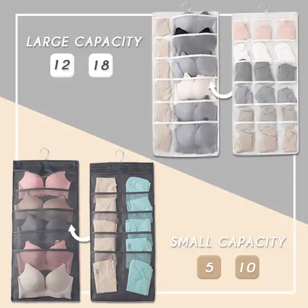 The Double-sided Clothing Organiser is a space-saving closet storage that you must have in the wardrobe. It provides 15 or 30 pockets for storing your intimate or small clothing items like bras, underwear, or socks, etc. With the clear grid fabric, it is easy to find and get your daily apparel.