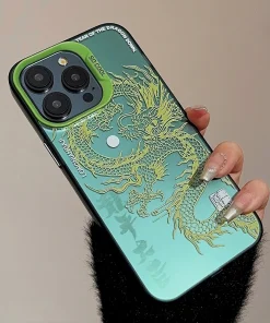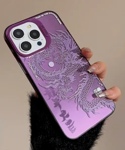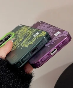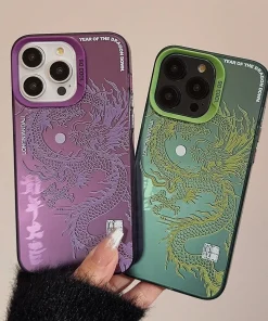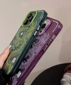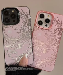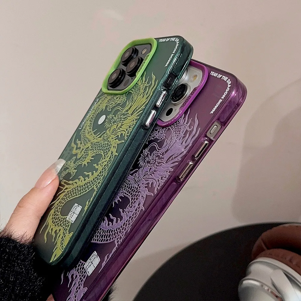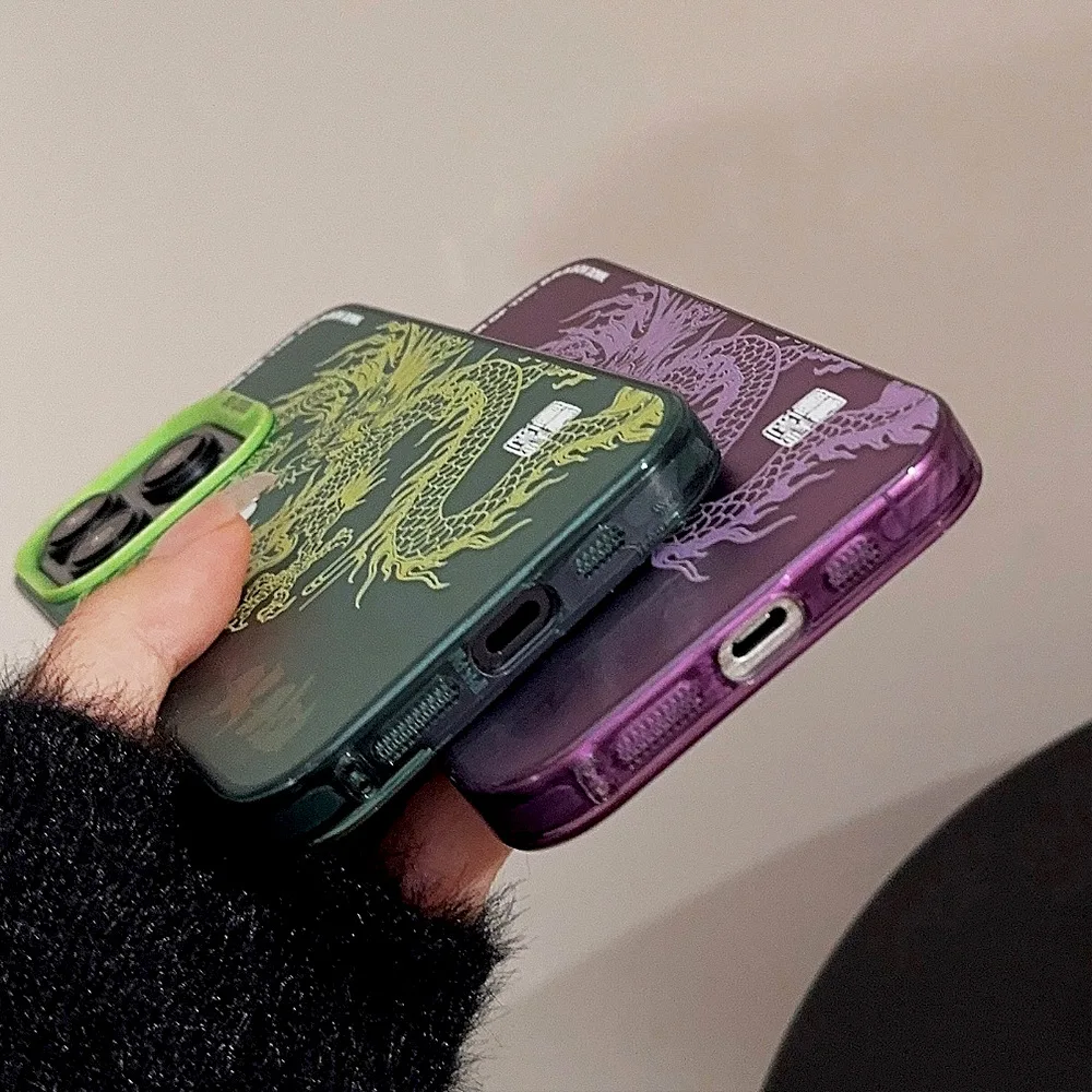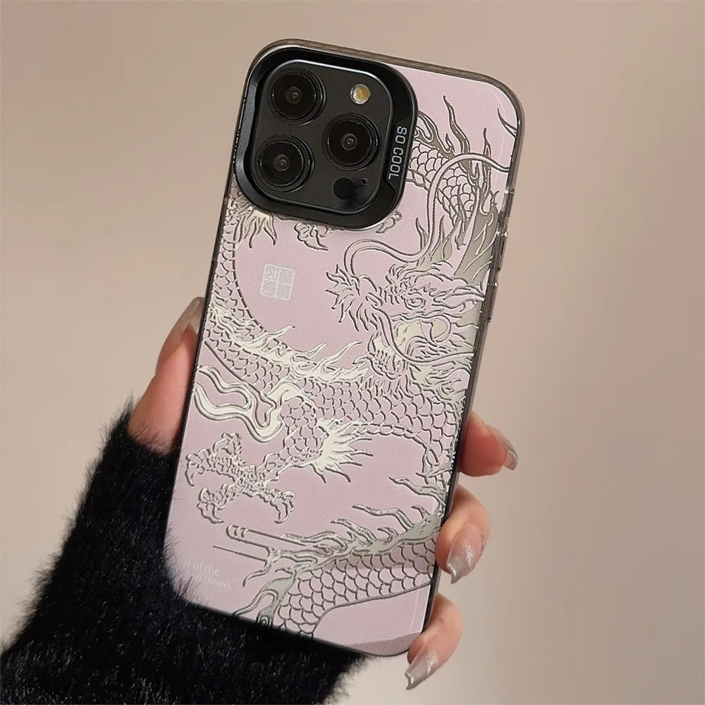 Luxury Dragon Phone Case for iPhone 15 Pro Max Plus 14 13 12 11 Pink Purple Green Black White Shockproof Phone Cover