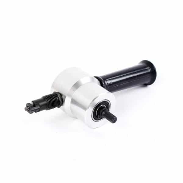 Just simply insert the drive shaft in the chuck of your drill and tighten the chuck, exactly like putting in a drill bit. When you start up the drill and the nibbler will be ready to cut. It will be a helpful tool for cutting sheet metal and corrugated metal roof sheets.